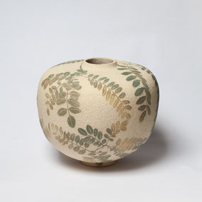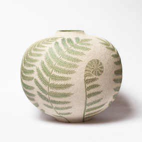 Vaso di grandi dimensioni in grès refrattario bianco, decorato a sgraffito con il motivo floreale della Felce.