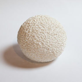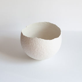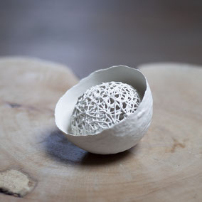 Guscio in porcellana, rivestito internamente con foglia oro. Può essere utilizzato come portacandele. Misura variabile a seconda del pezzo, circa 10 cm di diametro.