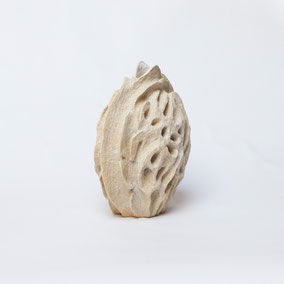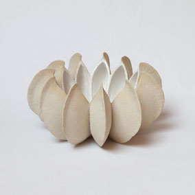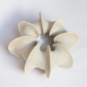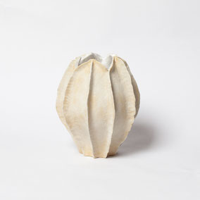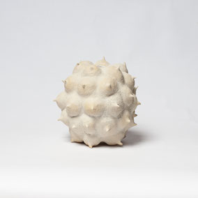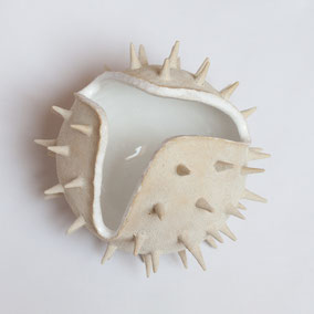 Vaso in grès bianco refrattario, smaltato e cotto ad alta temperatura. Ispirato alla "scatola porta semi" dell'Ippocastano. Misura 22 cm di diametro circa. Pezzo unico.