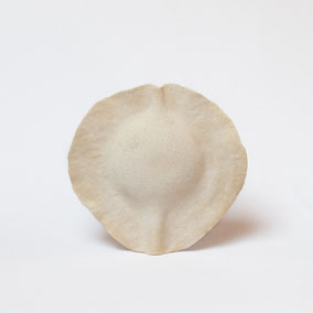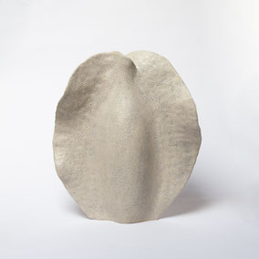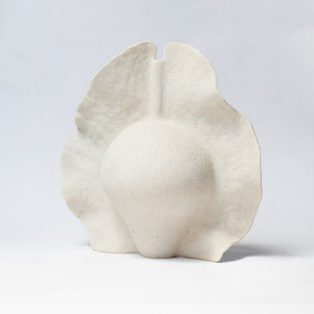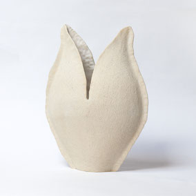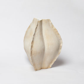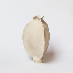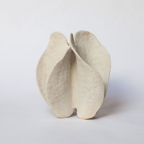 Vaso in grès bianco refrattario, smaltato e cotto ad alta temperatura. Ispirato alla "scatola porta semi" della Samara di Olmo. Misura 36 cm di larghezza circa e 39 cm di altezza. Pezzo unico.