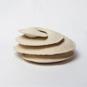 Vaso in grès bianco refrattario, smaltato e cotto ad alta temperatura. Presenta una finitura materica color avorio all'esterno e una bianca e lucida all'interno. Ispirato alla "scatola porta semi" della samara di Olmo. Pezzo unico.