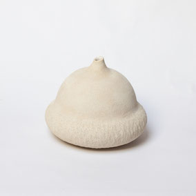 Vaso in grès bianco refrattario, smaltato e cotto ad alta temperatura. Presenta una finitura materica color avorio all'esterno e una bianca e lucida all'interno. Ispirato alla "scatola porta semi" del Silene. Pezzo unico.
